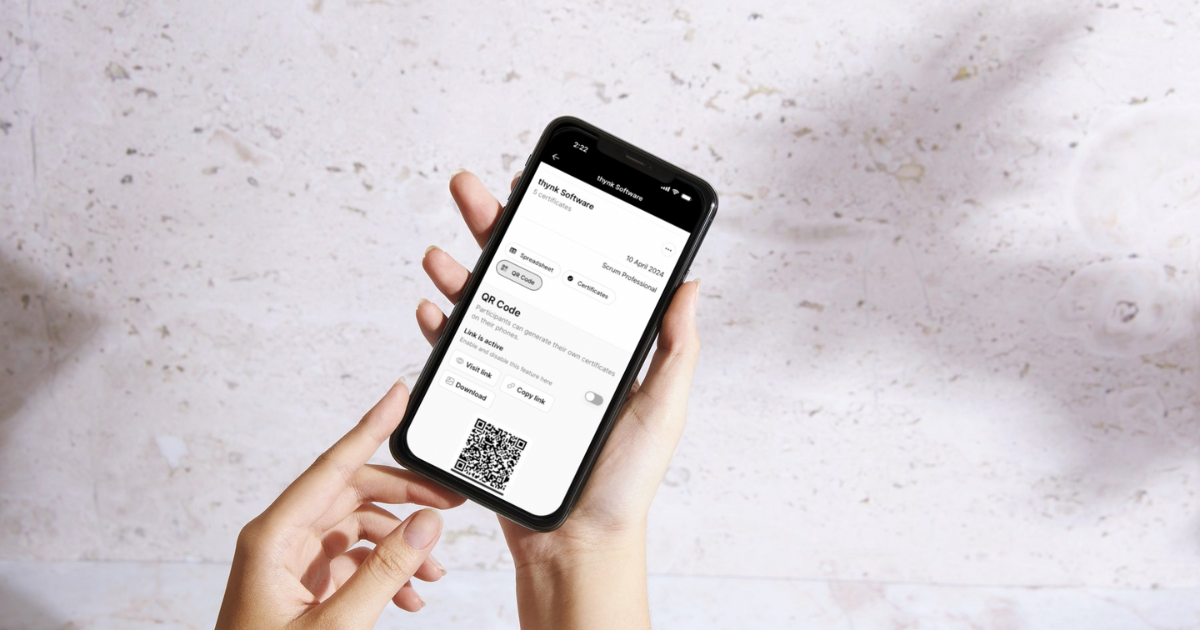 The easiest solution is to show the QR code at the end of your event (online or in-person). You can show it on your own mobile device or in a presentation. Participants can scan the QR code and visit a form screen, fill it out with their name. A few seconds later, their certificate is generated on their mobile device.