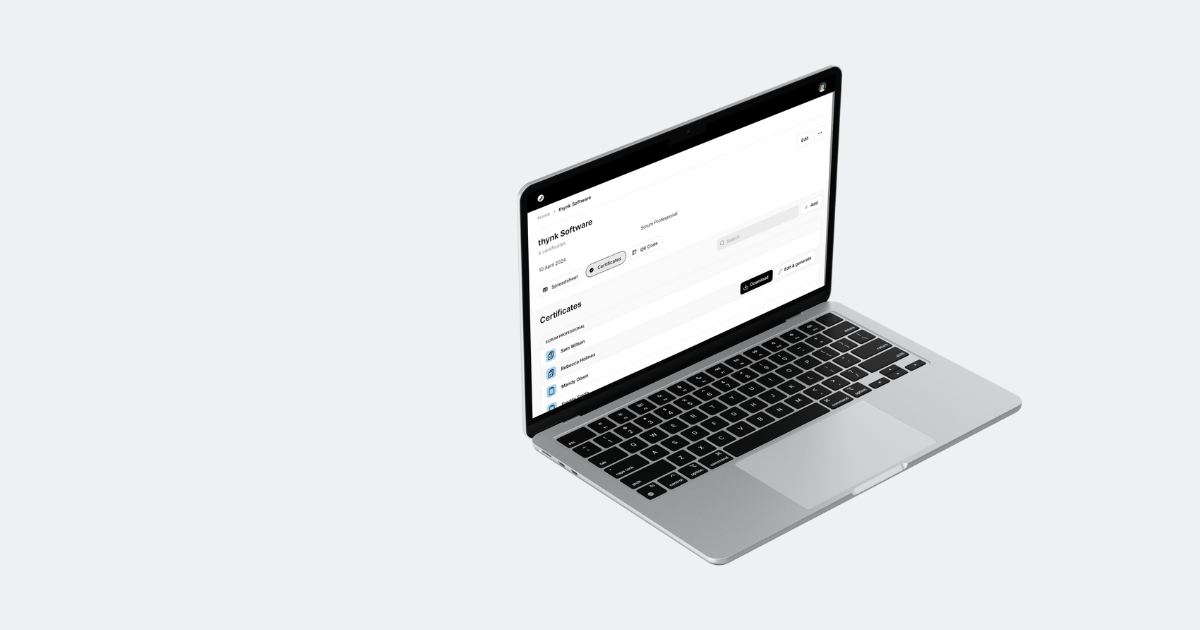 Once downloaded, you can print the PDF or send it via email. The small icon in the list represents the state of the certificate, if it's generated (and downloadable) or not.